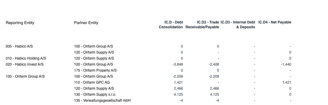 Recommendation: Change/ Create a new report layout with Legal Entity and Partner Entity in rows, IC Account/ Consolidation rules in columns.