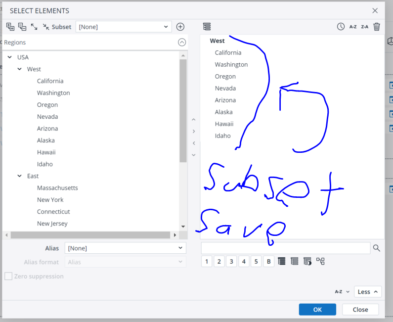Add the ability to create a new subset (Private or Public) in the Select Elements UI. This is where most people would want to create a quick picklist without having to go into modeler. This would really be handy(and is how TM1 does it now)