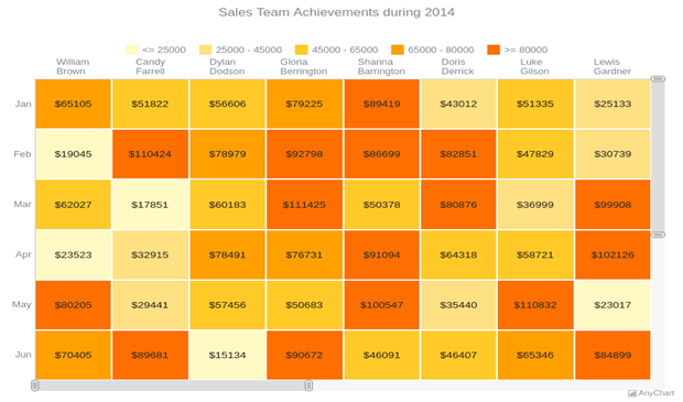 Provide support for creating a Heat Map Chart, which is a two-dimensional visual representation of data, where values are encoded in colors.