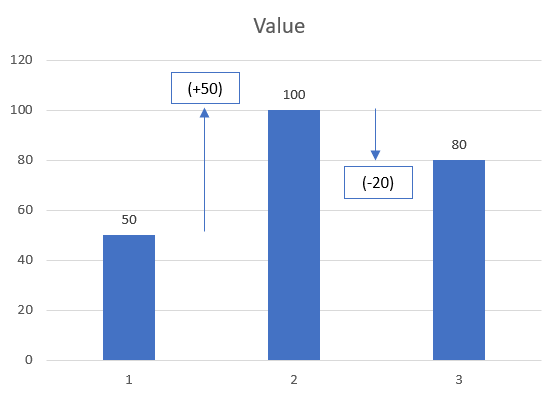 Add the ability to display delta values to bar charts and waterfall charts so that users can quickly and easily see the change from one data point to the next without having to read the values from the axes and calculate manually.