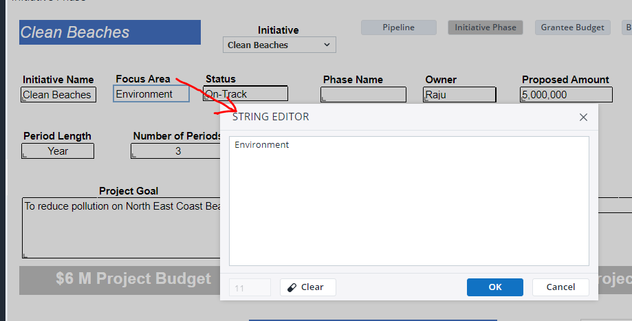 Customer feels the String Editor box when you click on a cell to change a string is too clunky and does not look good. They would like the option of replacing the name "STRING EDITOR" with something driven by a variable. Say the name associated with the text string. see attached screen shot