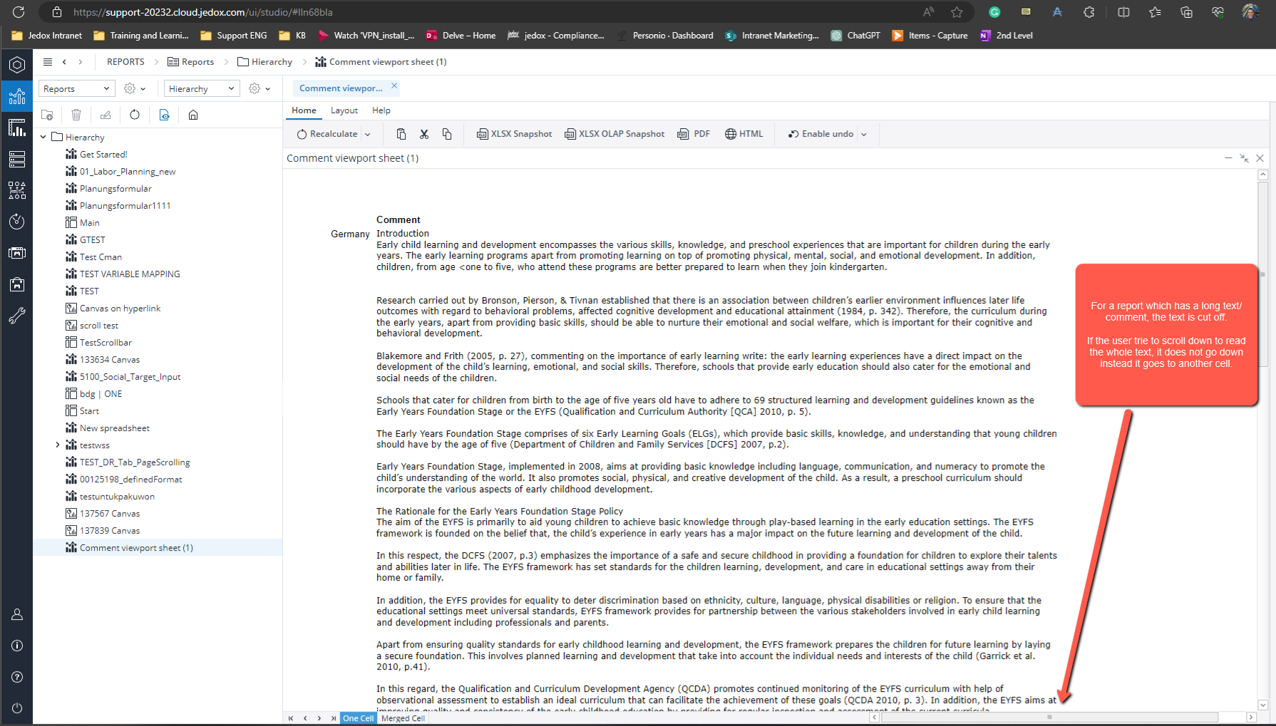 If the user tries to scroll down to read the whole text, it does not go down; instead, it goes to another cell. The user still cannot read the whole text.