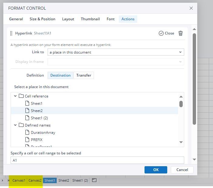 Unfortunately it is not possible to set a hyperlink to a Canvas sheet - see screenshot. Would be good if this is possible.