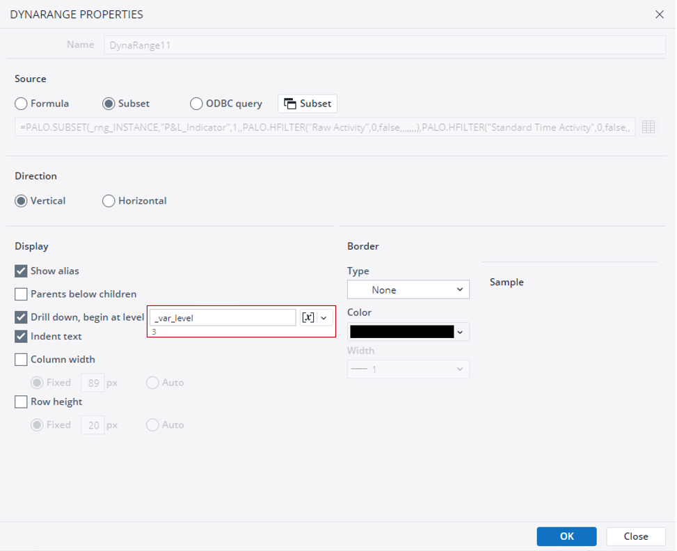 It would be great to be able to set up a button or to have the option somewhere in a report to drilldown the whole Dynarange in one click.