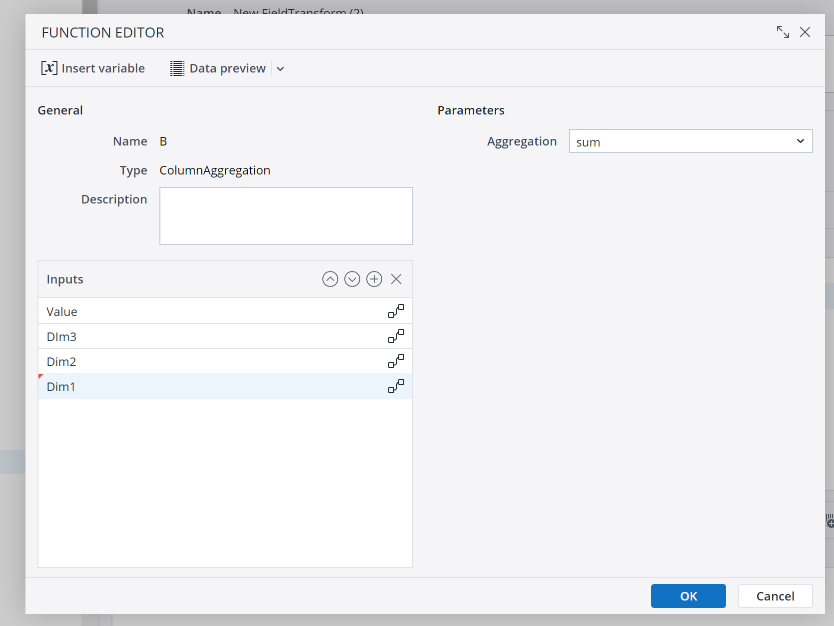 It would be great to be able to add additional columns in the Column Aggregation Transformation Function so the aggregation can be calculated based on the unique dimension elements from another column. Currently, it allows max two columns but would be great to have max 5.