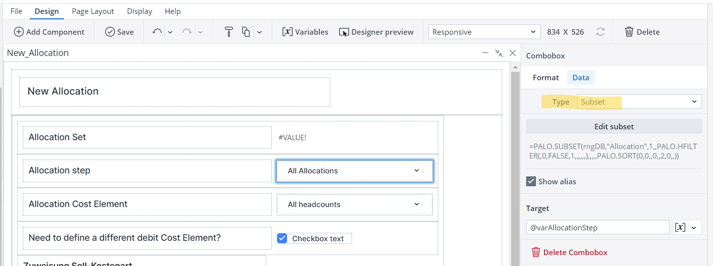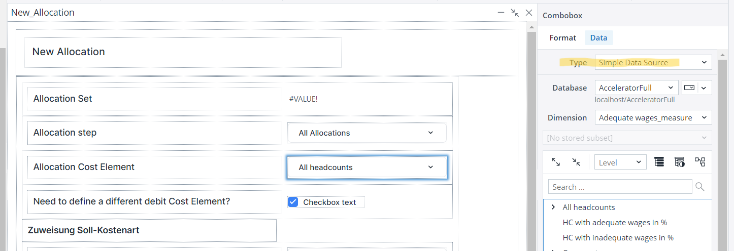 The handling of the simple datasource is also quite confusing. Within the simple data source, it is possible to select a subset. It will also appear like this in the "preview" section of the combobox settings. However, when opening the report, things are not shown as in the "preview".