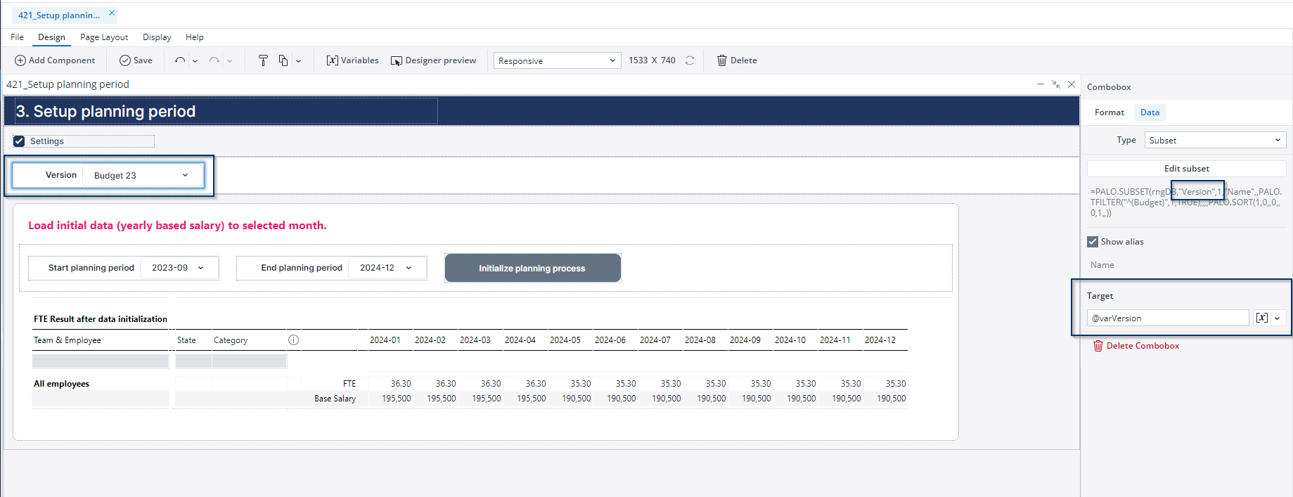 I create a new combobox with subset Version. Then it should set the target to @varVersion.