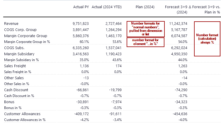 Otherwise a manual format for (a) the view or (b) a dimension on an axis or (c) an element of a dimension on an axis would be good to edit/set up in a view. Kind of similar with web spreadsheets, too.