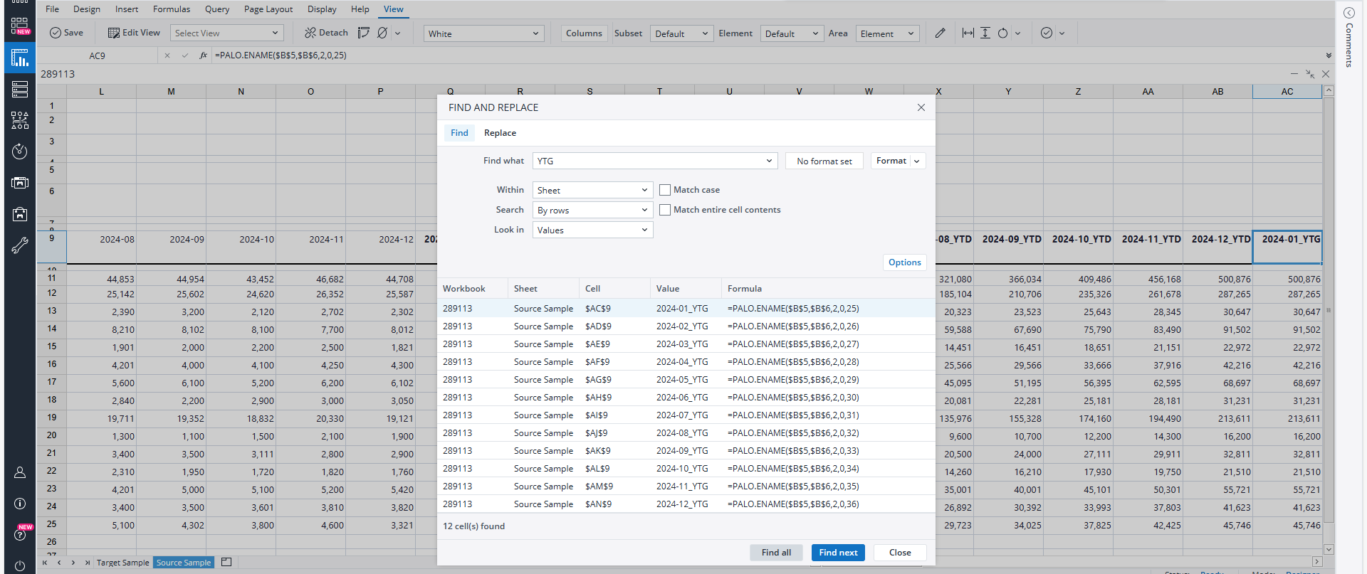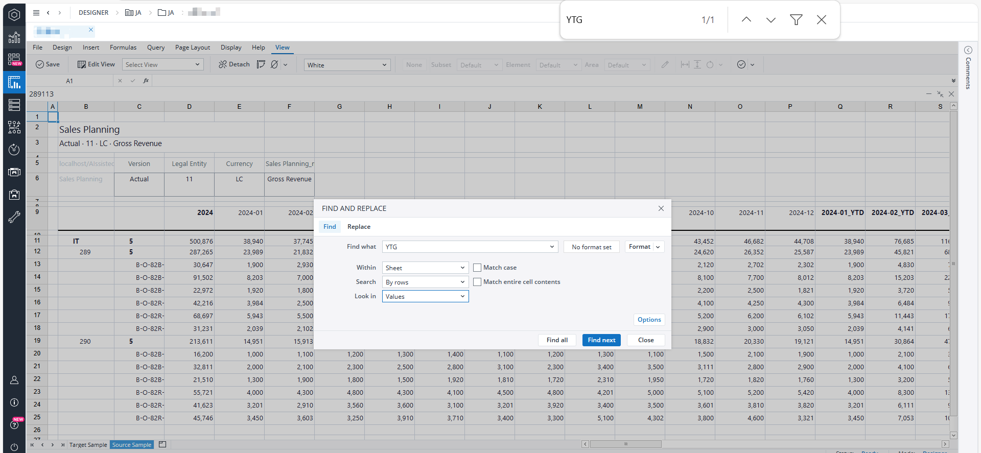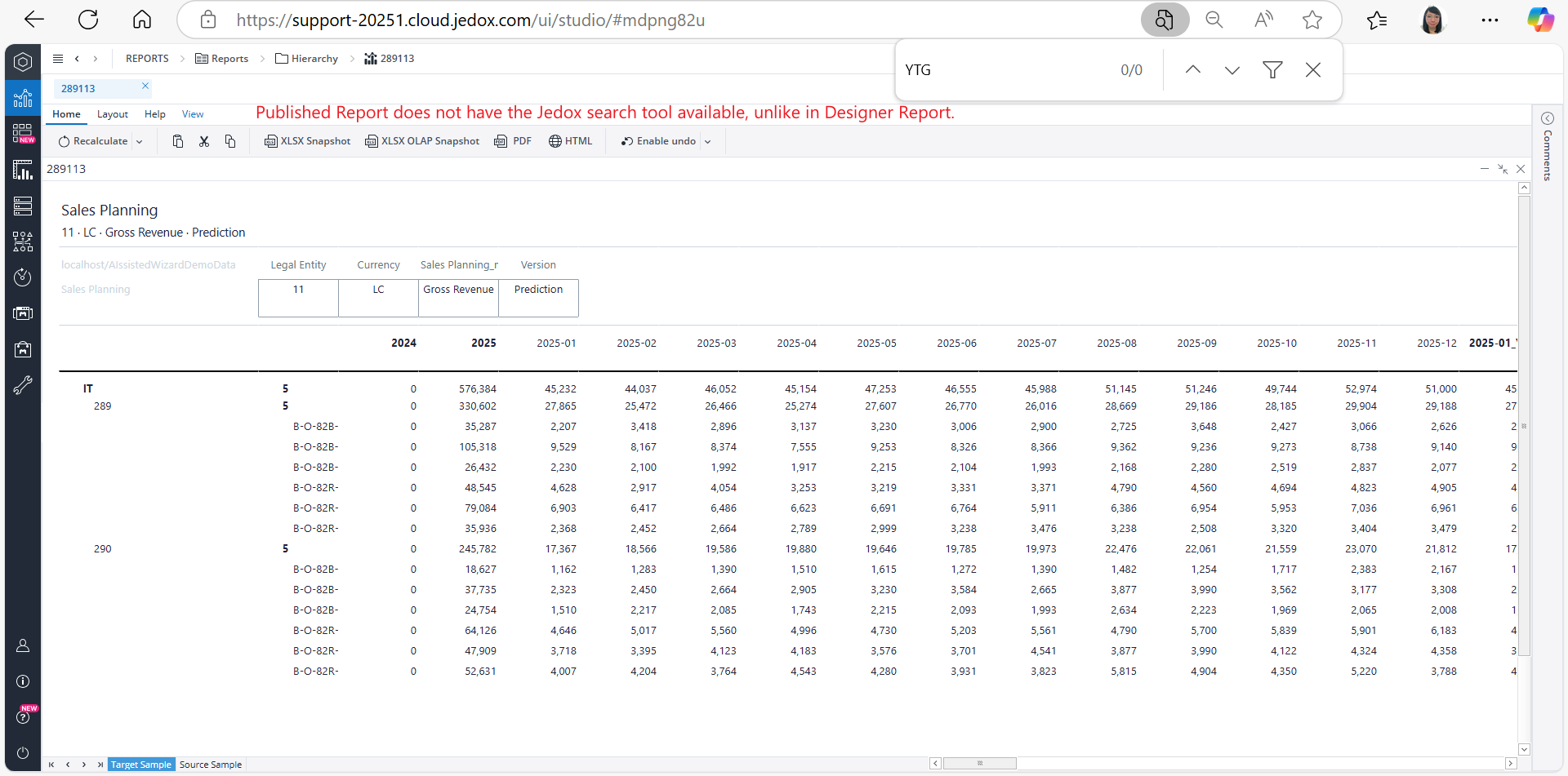 With Designer Reports, this is mitigated by Jedox's search tool, which reliably captures search results even for offscreen keywords.