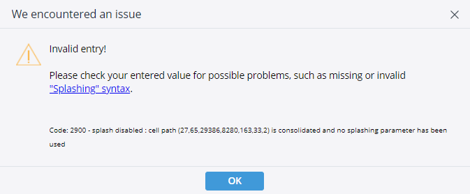 We got some feedback from our users about the Splashing warning message being hard to understand. They find it uneasy to find on which dimension they are trying to write on an aggregated level. It would be helpful to have a message easier to understand with, for example, a list the dimensions on which we are at an aggregated level.